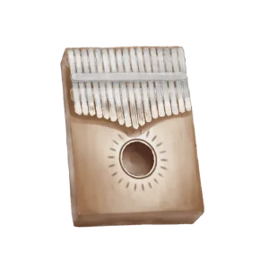 | カリンバとは、箱に並んだ細い金属棒を弾いて演奏するアフリカの楽器。