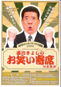 日本一愛される師匠【西川きよし】さんと吉本芸人が富加に登場し、爆笑必須のお笑いライブを公演します。